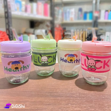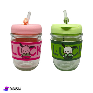 كوب زجاج شفاف مع غطاء وشلمونة زجاج شعار LUCK
