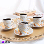 طقم فناجين قهوة مع صحون - أبيض وذهبي
