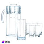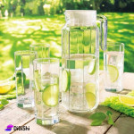 طقم كاسات مع إبريق، ناسب للماء والعصائر والمشروبات الغازية وما إلى ذلك، يمكن غسله في غسالة الأطباق بألوان متينة لن تفسد حتى بعد الاستخدام المتكرر