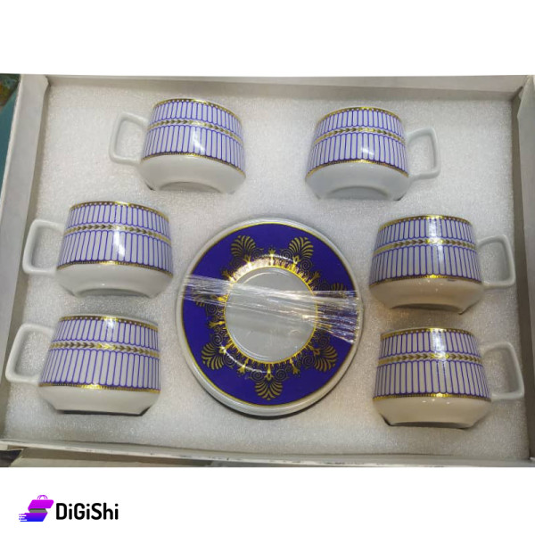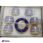 دزينة فناجين قهوة مخطط أزرق وأبيض
