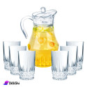 طقم شراب مكون من إبريق و6 كاسات، مناسب للماء والعصائر والمشروبات الغازية وما إلى ذلك، يمكن غسله في غسالة الأطباق بألوان متينة لن تفسد حتى بعد الاستخدام المتكرر