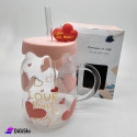 كوب زجاجي بتصميم مميز، يأتي مع شلمونة وغطاء، مصنوع من أجود أنواع الزجاج الشفاف، يتميز بسمك مناسب للحفاظ على حرارة مشروباتك
