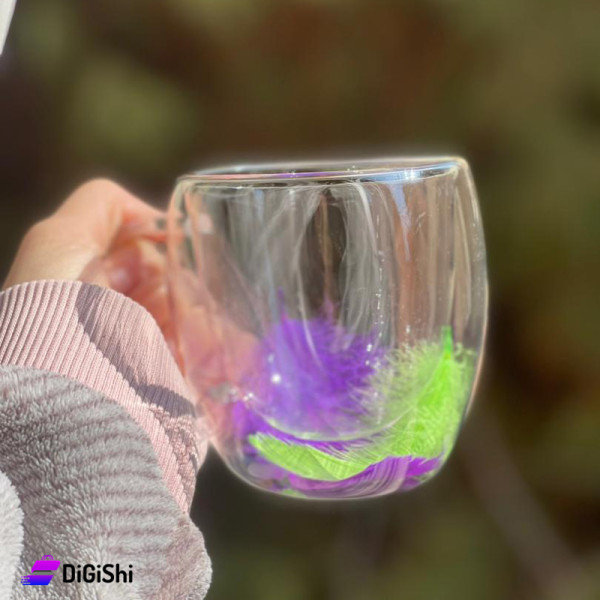 كوب زجاجي شفاف مقاوم للحرارة، يتميز بتصميم رائع وجذاب، مصمم من طبقتين من الزجاج المقاوم ويحتوي بين هاتين الطبقتين على ريش بأشكال وألوان مختلفة