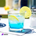 كوب بيركس شفاف من طبقتين بداخلهما ورود زرقاء وبيضاء