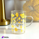 كوب زجاج نقشة ورود صفراء حجم وسط