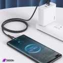 كابل الشحن السريع وناقل البيانات مصنوع من مادة متينة مغلفة، خالٍ من التشابك وسهل التخزين، يتميز بأنه يعمل على ضبط الجهد الكهربائي بشكل مثالي حسب إحتياجات الجهاز