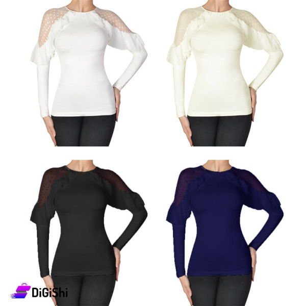 كنزة كم قبة مدورة مع شيفون وكشكش عالكتف