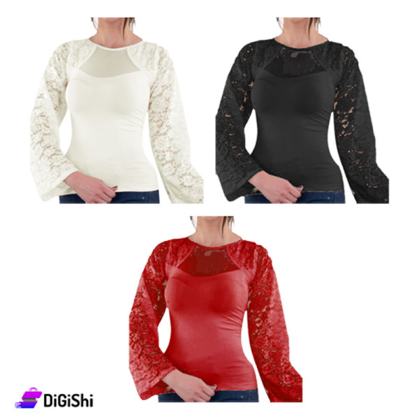 كنزة نسائية كم طويل، بتصميم أنيق وجذاب اكمام واسعة وعريض من الدانتيل وصدر شيفون، مما يضفي عليها لمسة أنيقة، كما أنها مريحة وعملية وذات ملمس ناعم