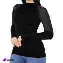 كنزة نسائية، تتميز بتصميم أنيق وجميل، لها كشكش على الصدر وبأكمام نصفها الأعلى شيفون، مما يضفي عليها لمسة من الجمال، كما أنها مريحة وعملية وذات ملمس ناعم