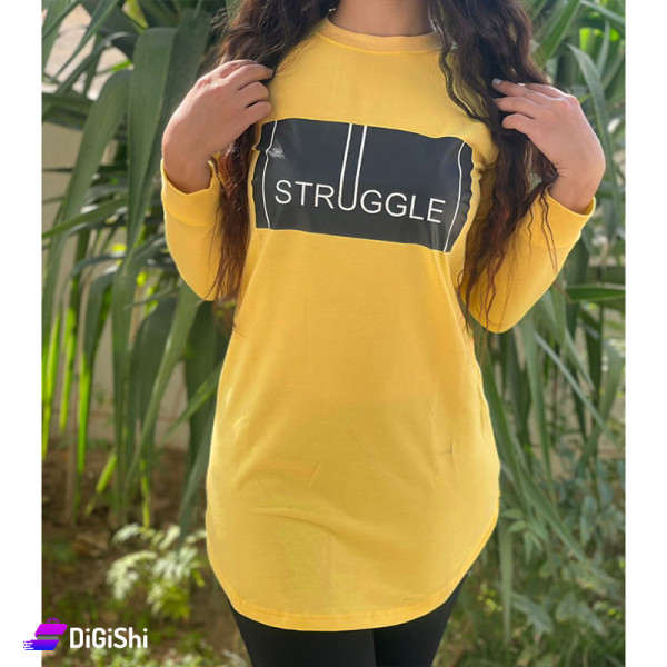 كنزة بوليستر طويلة مع فتحات عالجانب لون أصفر