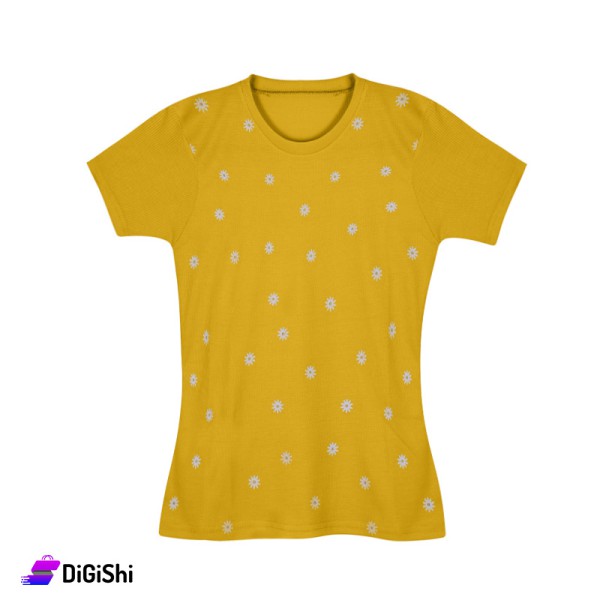كنزة صيفية نسائية نصف كم، بتصميم لطيف لتكون ذات شكل مختلف ومميز وتكون إضافة لخزانة ملابسك الصيفية وخاصةً أنها موردة برسمة ورد الأقحوان اللطيف ذو الطابع الأنثوي