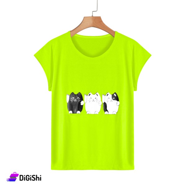 كنزة صيفية نسائية، مضاف لها طبعة ثلاث قطط تجعلها تحمل طابع أنثوي جميل، ستكون إضافة مميزة لخزانة ملابسك الصيفية