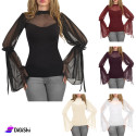 كنزة نسائية مع أكمام عريضة شيفون بربطة رفيعة