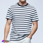 كنزة رجالية قطن مخططة لون أبيض وكحلي