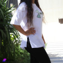 كنزة نسائية مصنوعة من قماش قطني عالي الجودة، مصممة بطريقة كلاسيكية وأكمام نصف كم، بالإضافة إلى طولها المناسب الذي يتيح لك إمكانية ارتداؤها مع البناطيل أو الفيزونات