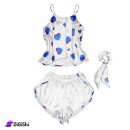 بيجاما نسائية مكوّن من ثلاث قطع شورت، كنزة شيال وربطة شعر