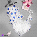 طقم لانجري ساتان رسمة قلوب - أزرق وأبيض