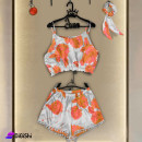 بيجاما نسائية ساتان رسمة ورود - أورانج وأبيض