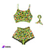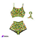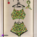 بيجاما نسائية مصنوعة من الساتان، مكوّنة من شورت قصير وكنزة شيال قصيرة مزمومة من الأسفل وربطة شعر