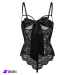 لانجري نسائي، بتصميم مميز وجذاب، مصنوع من الدانتيل الناعم، ويأتي بصدر مكشوف مع ربطة عقدة