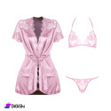 طقم لانجري مميز، يأتي بثلاث قطع، جاكيت ساتان، سترينع، سوتيان، بتصميم مميز وجذاب، يمنحك إطلالة ساحرة