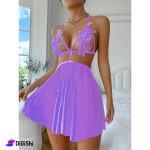 فستان لانجري مصنوع من الشيفون ومطرز بالدانتيل مزود بسترينغ قياس موحد