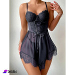 لانجري نسائي مصنوع من قماش الدانتيل الفاخر يأتي بصدر مكشوف قياس موحد