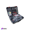 علبة عدة يدوية مع مثقب رجاج، مكونة من 98 قطعة، منها مثقب كهربائي بجهد 220 فولت، وتيار3,9 أمبير