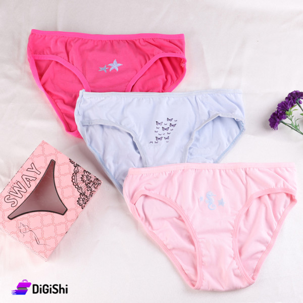 مجموعة سليب نسائي قطني 3قطع ماركة SWAY مع رسومات