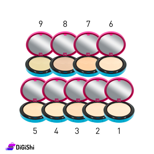 بودرة مضغوطة لتغطية عالية ونعومة فائقة، ناعمة وخفيفة تمتزج مع البشرة بسهولة للحصول على لون طبيعي ومشرق بلا عيوب، بالإضافة إلى أنها تضفي توهجاً ناعماً على البشرة، فهي تستخدم لتثيبت المكياج في مكانه وإزالة اللمعة لمسة نهائية مخملية رائعة