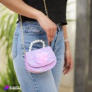 حقيبة كتف ويد نسائية صغيرة، بتصميم لطيف، مع قبضة لؤلؤية لتحمليها في يدك، وسلسلة لتحميلها على كتفك
