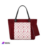 حقيبة نسائية كبيرة، مصنوعة من المخمل، بتصميم مميز نقشة زخارف ورود، مما يضفي لمسة من الجمال على الحقيبة