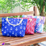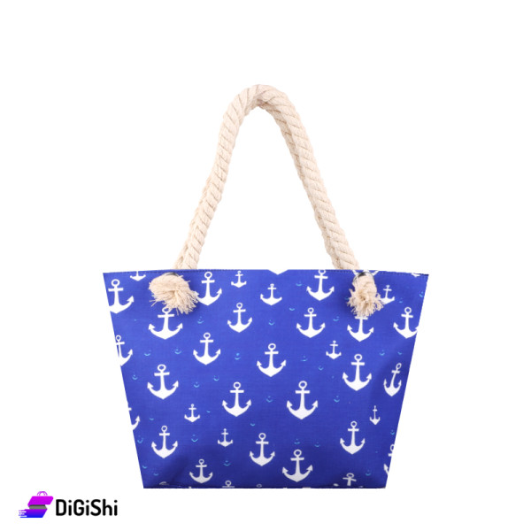 حقيبة بحر نسائية كبيرة لون نيلي رسمة مرساة
