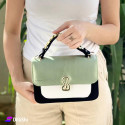 مكونة من طبقة واحدة تتسع للعديد من الأغراض، كما أنها مزودة بقبضة يد قماش مع سلسلة ذهبية لمسكها باليد، وحزام طويل لتتمكني من حملها على الكتف