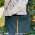 حقيبة نسائية مصنوعة من مشمع  تأتي بحزام كتف قماشي، ولها قبضة يد مكونة من طبقة واحدة واسعة وجيب داخلي سحاب