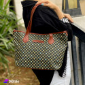 حقيبة نسائية كبيرة قماش نقشة معينات مع شعار PRADA لون كحلي