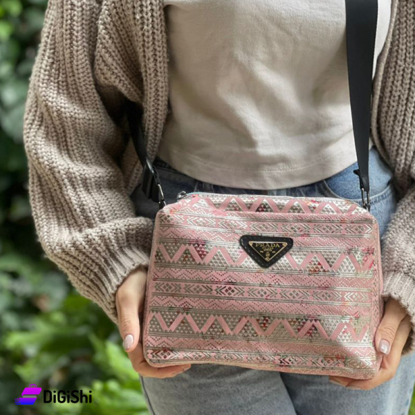 تتكون من طبقة واحدة مع جيب داخلي، تتسع للأغراض الشخصية مثل المكياج، الموبايل، النقود والعديد من الضروريات، لها حزام قماشي بشعار PRADA
