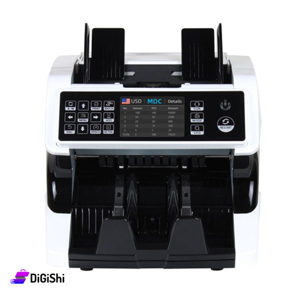 عدادة نقود مزودة بلوحة مفاتيح تعمل باللمس لسهولة الاستخدام، مع ميزات اكتشاف الأشعة فوق البنفسجية، والأشعة تحت الحمراء، وعد القيمة المختلطة للعملات المتعددة وتقديم تقرير تفصيلي لكل فئة 10. التعرف على الرقم التسلسلي للدولار الأمريكي واليورو والجنيه الإسترليني وما إلى ذلك