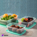 مجموعة تبروير مصنوعة من البلاستيك لحفظ الأطعمة، مؤلفة من ثلاث قطع بأحجام مختلفة، شفافة مع غطاء ملون محكم الإغلاق، مصممة بشكل أنيق وعملي حيث من الممكن وضعها في الثلاجة أو في خزائن مطبخك من دون أن تأخذ مساحة كبيرة