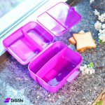 علبة ساندويش لحفظ الطعام على شكل مستطيل، مكونة من طبقتين منفصلتين مع وجود غطاء فاصل بينهما، وكل طبقة مقسمة إلى قسمين لفصل أنواع الطعام مما يحافظ على جودة الطعام ويمنع إختلاط النكهات