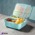 علبة ساندويش لحفظ الطعام على شكل مستطيل، مكونة من طبقتين منفصلتين مع وجود غطاء فاصل بينهما، وكل طبقة مقسمة إلى قسمين لفصل أنواع الطعام مما يحافظ على جودة الطعام ويمنع إختلاط النكهات