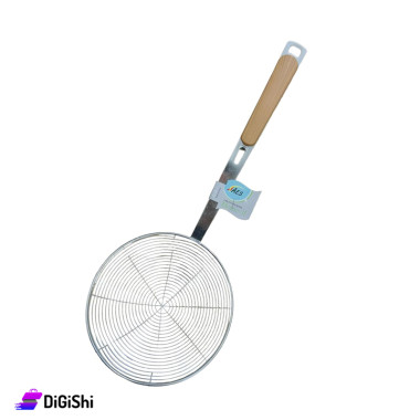 مصفاة شبك للقلي ستانلس ستيل مع مقبض يد خشب
