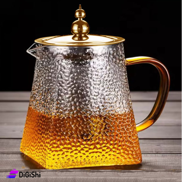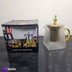 إبريق زجاج محجر مع مصفاة لون شفاف وذهبي