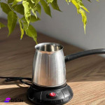 ركوة ستانلس ستيل مع قاعدة للتسخين الكهربائي، مصممة لتوفير تسخين سريع وفعال بقدرة 600واط وسعة 500 مل