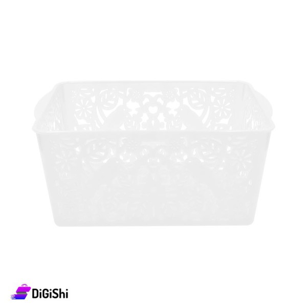 سلة ذات شكل مستطيل، مع نقوش مفرغة ولون جذاب وعصري، لوضع الأغراض وترتيبها، وتصلح أيضاً لترتيب الأغراض في البراد كأكياس الخضار