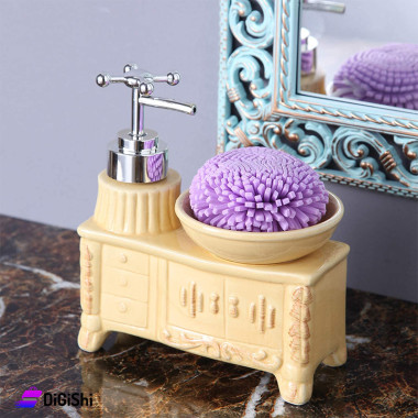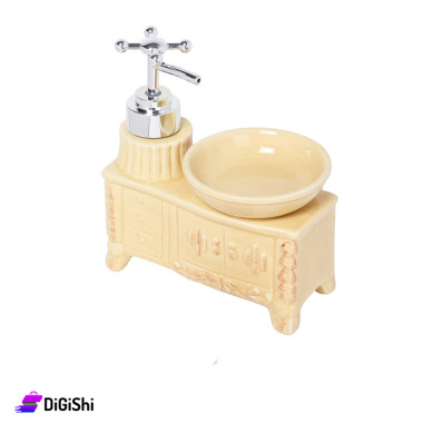 علبة صابون سائل سيراميك للديكور مع مكان لليفة لون بيج