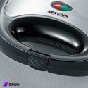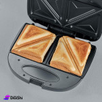 سخانة سندويش مصنوعة من هيكل بلاستيكي عازل للحرارة، ولوحات ستانلس غير لاصقة تمنع شرائح الخبز من الالتصاق وتسمح بسهولة التنظيف