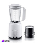 خلاط مع مطحنة بن، مصنوع من مواد عالية الجودة، حيث يأتي بأبريق سهل التنظيف مع شفرادة حادة مصنوعة من الستانلس ستيل مقاومة للصدأ، وله قواعد مخمدة ومانعة للانزلاق والارتجاج