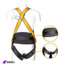 يتكوّن من حزام للصدر والفخذ قابل للتعديل وقطعة مكافحة السقوط على الظهر لربطها بالأحزمة وأشرطة عاكسة للسلامة أثناء العمل الليلي