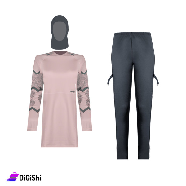 بوركيني مزخرف قطعتنان مع حجاب STARTER - زهر